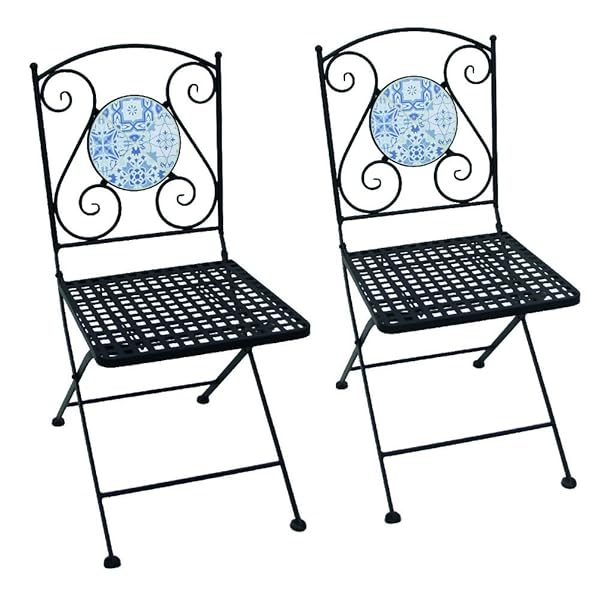 VERDELOOK Coppia Sedie Mosaico in Metallo serie Azulejos, altezza 89 cm larghezza 46x40 cm
