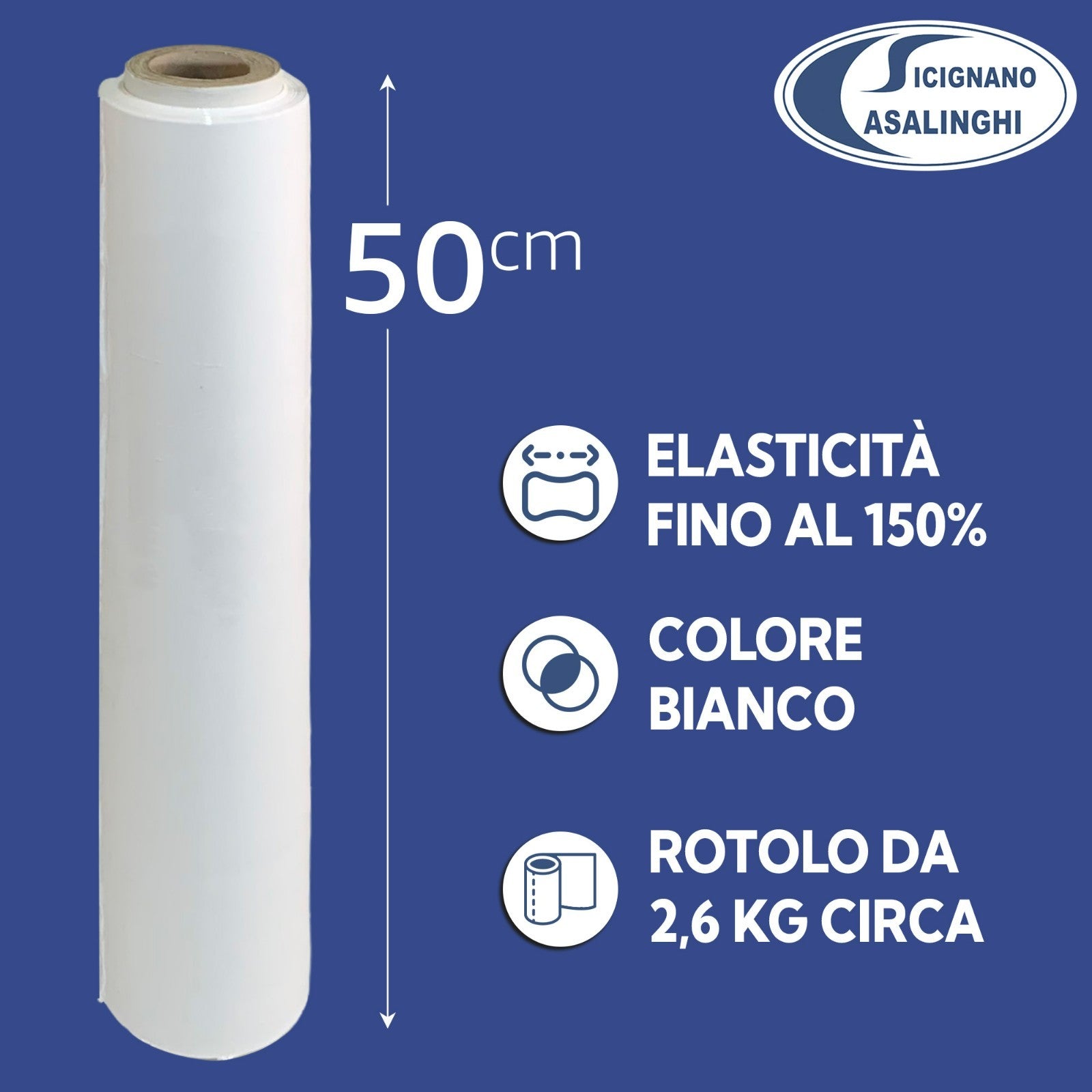 Film Estensibile Manuale Bianco per Imballaggi 1-3-6 Bobine 2,6kg 50cm Anima Ø4,7cm