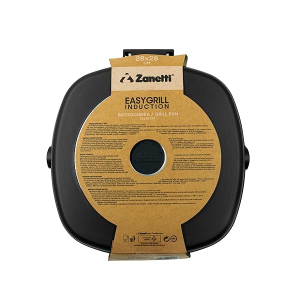 Zanetti, Bistecchiera 28 x 28 cm, Piastra grill in Alluminio Pressofuso ad Alto Spessore, Piastra Grill adatta ai Piani ad Induzione, Manico Pieghevole